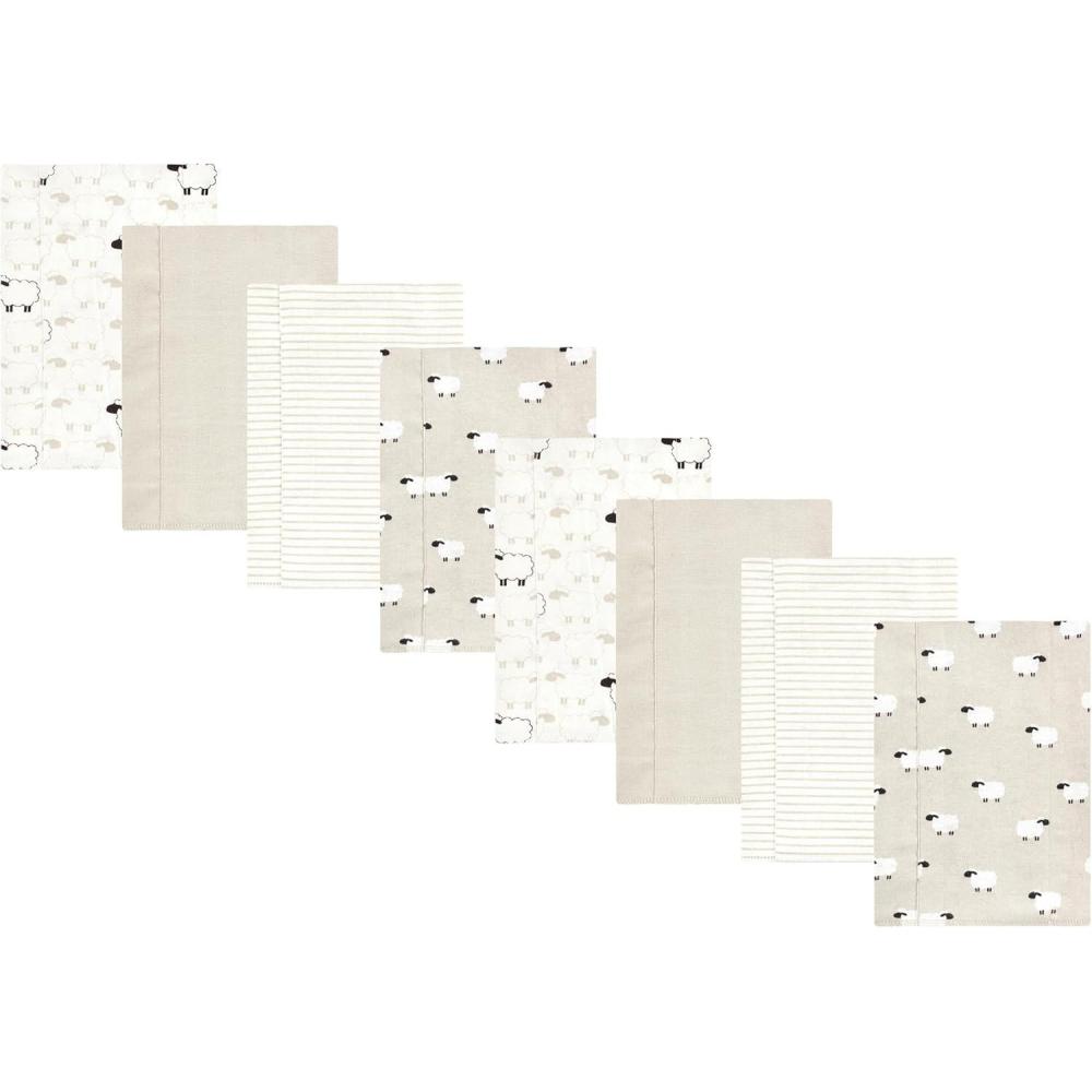 Hudson Baby Cotton Poly Flannel Burp Cloths Multipack, Sweet Roses 8-Pack, One Size(Taupe Sheep 8-pack)