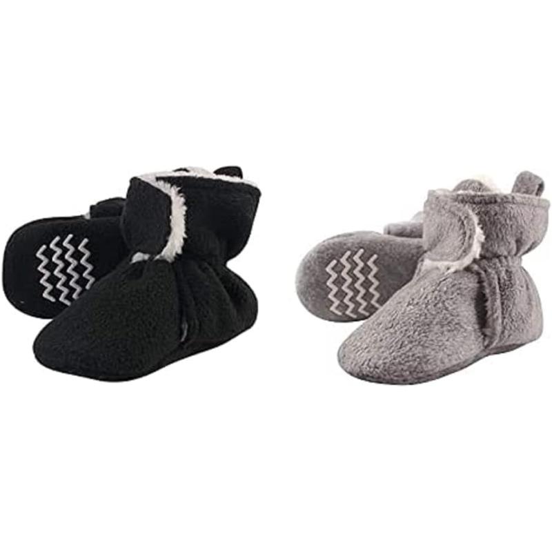 Hudson Baby Cozy Fleece and Sherpa Booties, 2-Pack(Black/Heather Gray)