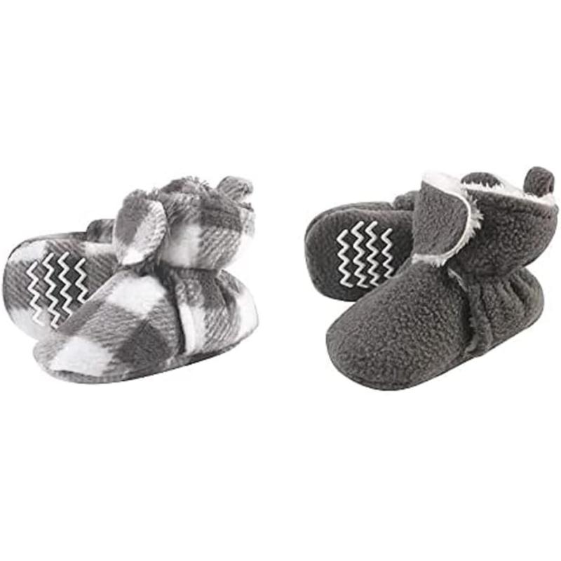 Hudson Baby Cozy Fleece and Sherpa Booties, 2-Pack(Charcoal White Plaid/Charcoal)