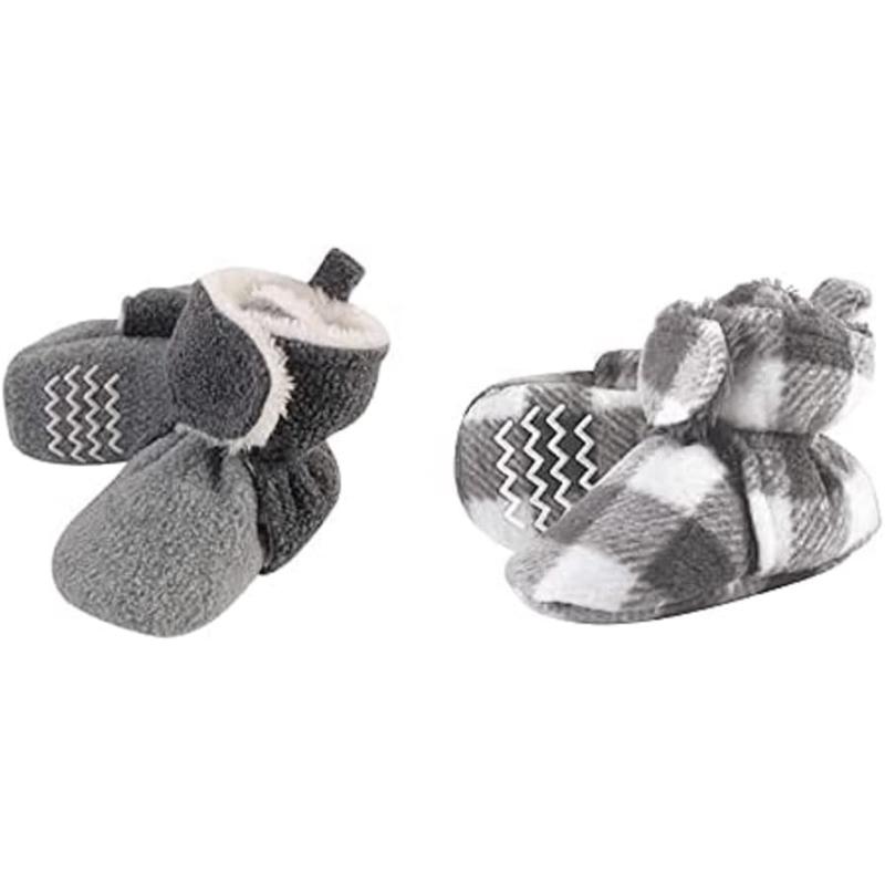 Hudson Baby Cozy Fleece and Sherpa Booties, 2-Pack(Heather Charcoal Heather Gray/Charcoal White Plaid)