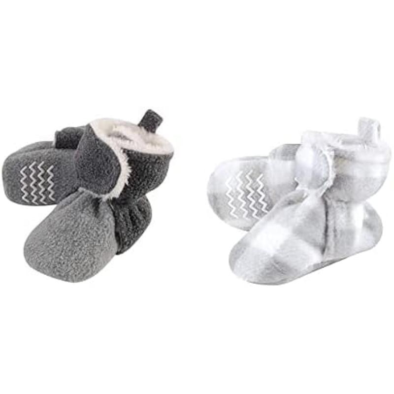 Hudson Baby Cozy Fleece and Sherpa Booties, 2-Pack(Heather Charcoal Heather Gray/Gray White Plaid)