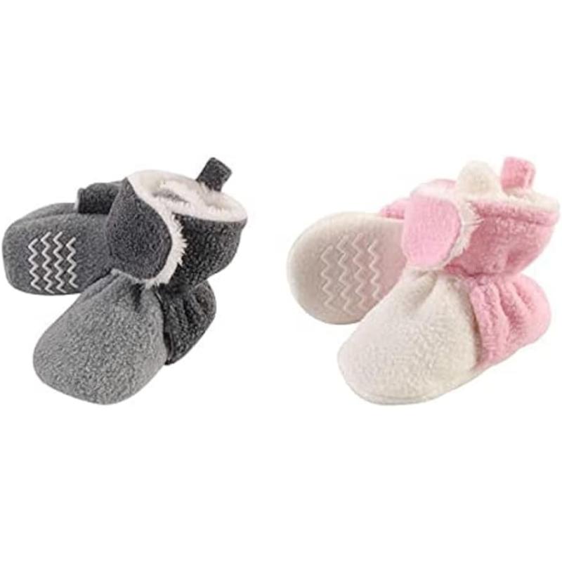 Hudson Baby Cozy Fleece and Sherpa Booties, 2-Pack(Heather Charcoal Heather Gray/Light Pink)