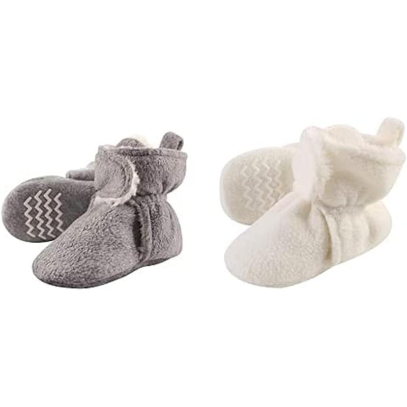 Hudson Baby Cozy Fleece and Sherpa Booties, 2-Pack(Heather Gray/Cream)