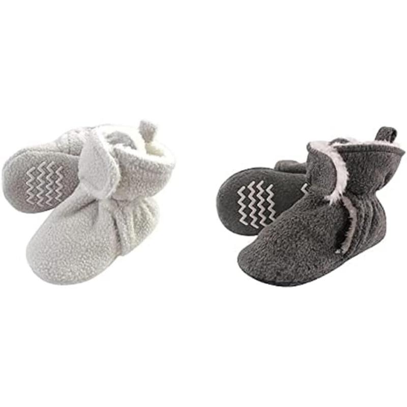 Hudson Baby Cozy Fleece and Sherpa Booties, 2-Pack(Light Gray/Heather Charcoal)