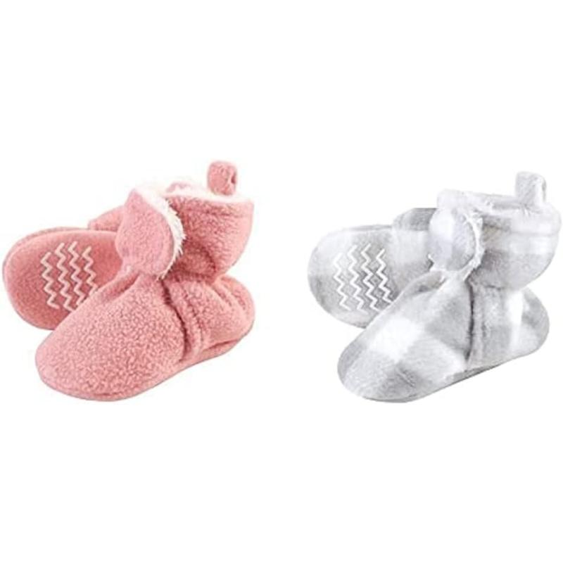 Hudson Baby Cozy Fleece and Sherpa Booties, 2-Pack(Strawberry Pink/Gray White Plaid)
