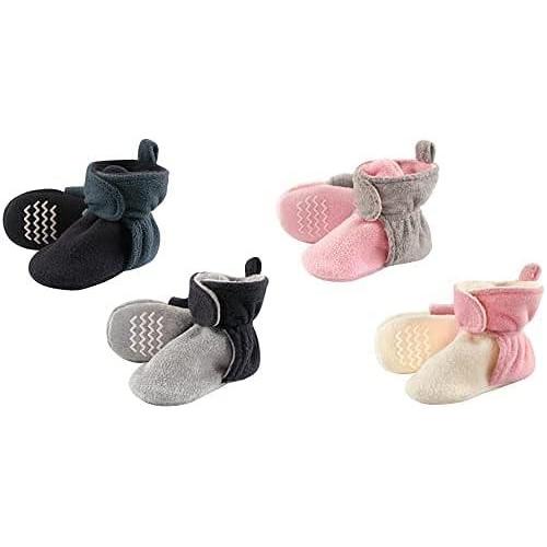 Hudson Baby Cozy Fleece Booties, 4-Pack(Blue Gray/Lt Pink Cream)