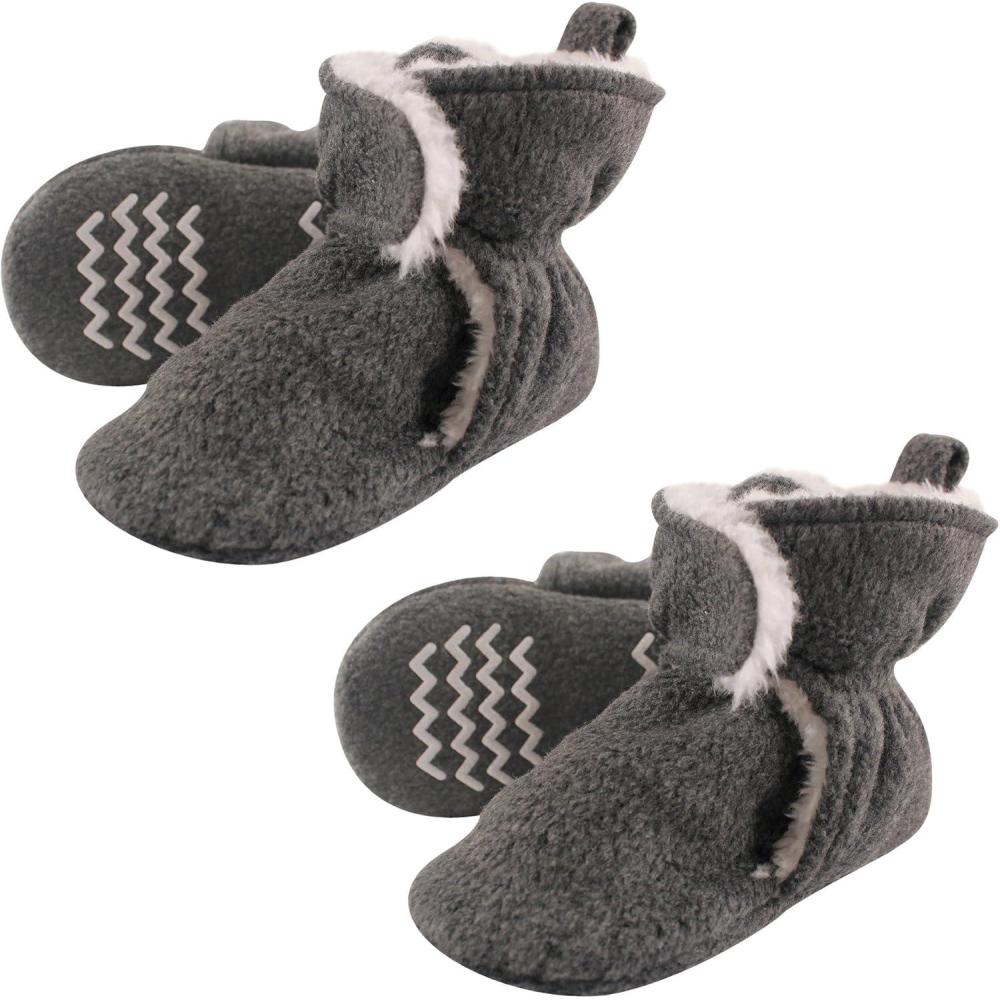 Hudson Baby Cozy Warm Toddler Slipper Booties with Non Skid Bottom(Heather Charcoal Sherpa)