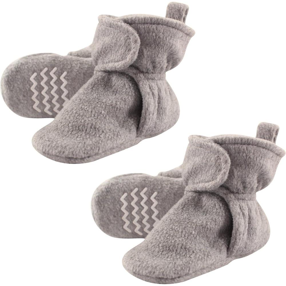 Hudson Baby Cozy Warm Toddler Slipper Booties with Non Skid Bottom(Heather Gray Fleece)