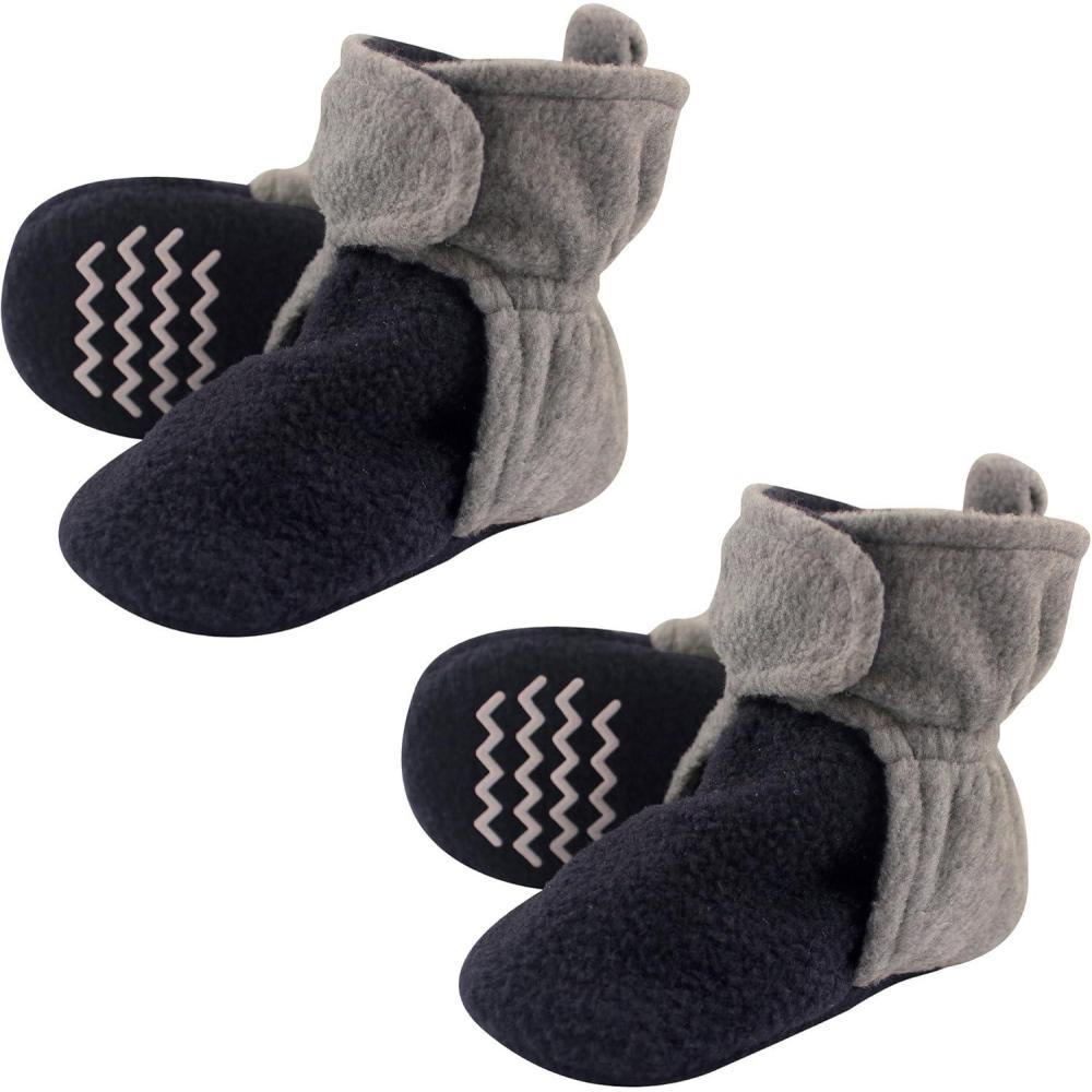 Hudson Baby Cozy Warm Toddler Slipper Booties with Non Skid Bottom(Navy and Gray Fleece)