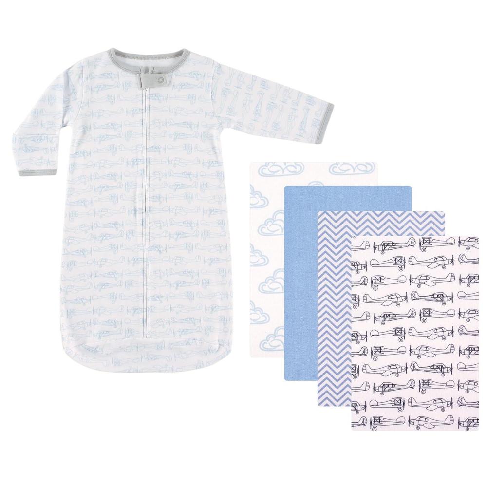 Hudson Baby Flannel Blanket 4-Pack & Interlock Sleeping Bag (0-6M)(Airplane)