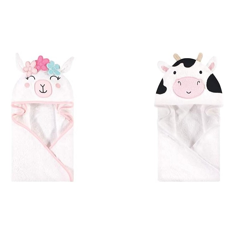 Hudson Baby Girl Animal Face Hooded Towel 2-Pack, Flower Llama Bear Girl(Flower Llama Cow One Size)