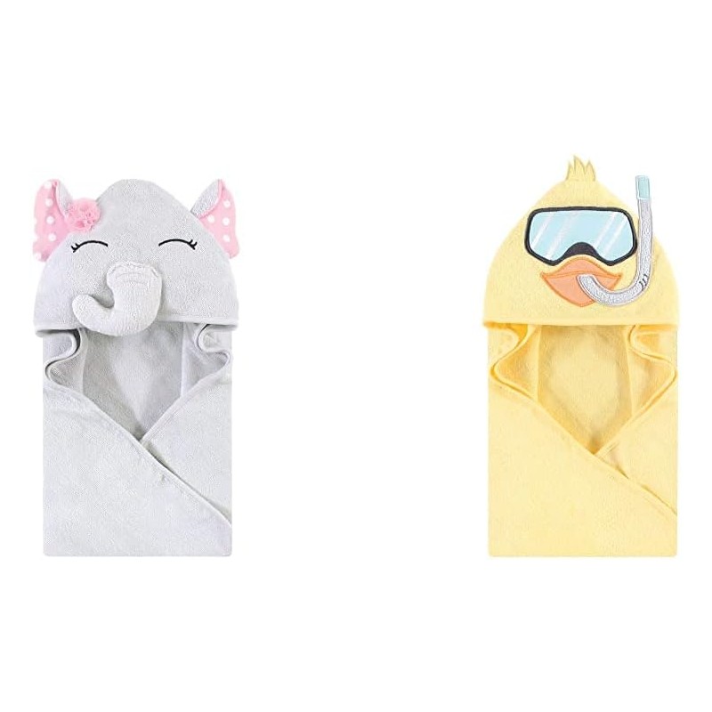 Hudson Baby Girl Animal Face Hooded Towel 2-Pack, Flower Llama Bear Girl(White Dots Pretty Elephant Scuba Duck One Size)