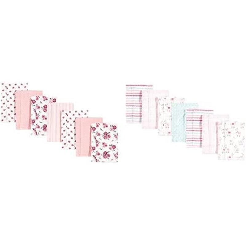 Hudson Baby Girl Cotton Flannel Burp Cloth 14-Pack, Winter Forest Neutral Giraffe(Cream Rose Llama)