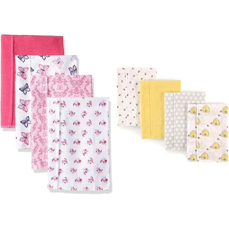 Hudson Baby Girl Cotton Flannel Burp Cloth 8-Pack, Peacock Feather Butterflies(Butterflies Bee)
