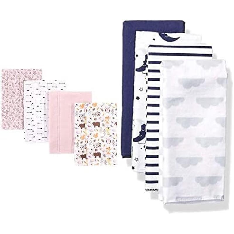 Hudson Baby Girl Cotton Flannel Burp Cloth 8-Pack, Peacock Feather Butterflies(Pinecone Moon and Back)
