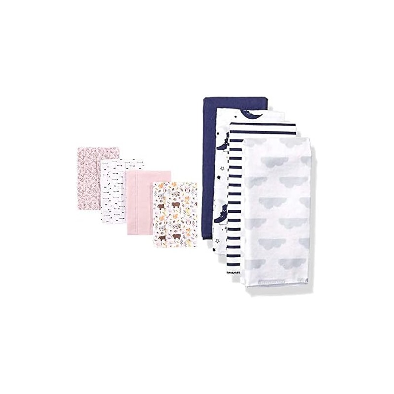 Hudson Baby Girl Cotton Flannel Burp Cloth 8-Pack, Toile Flamingos(Toile Gray Clouds One Size)