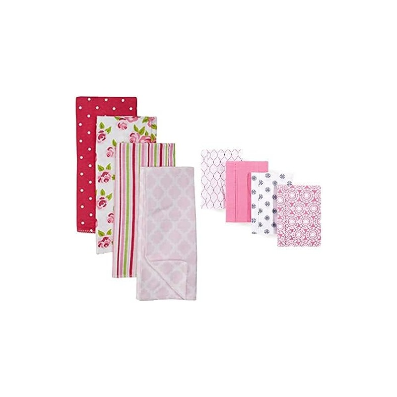 Hudson Baby Girl Cotton Flannel Burp Cloth 8-Pack, Toile Flamingos(Rose Medallion One Size)