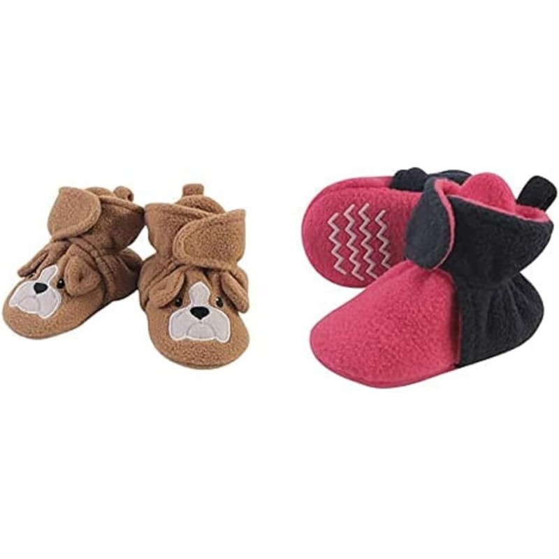 Hudson Baby Girl Cozy Fleece Booties 2-Pack, Dog Dark Pink Navy, 6-12 Months(Hudson Baby Girl Cozy Fleece Booties 2-Pack, Dog Dark Pink Navy, 6-12 Months)