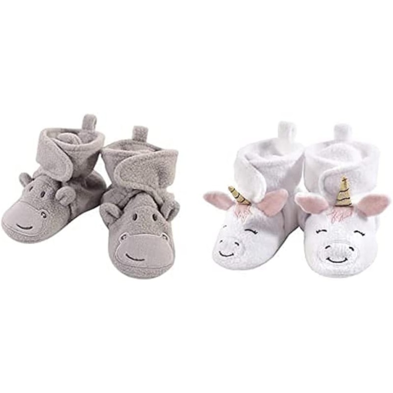 Hudson Baby Girl Cozy Fleece Booties 2-Pack, Hippo White Unicorn, 6-12 Months(Hudson Baby Girl Cozy Fleece Booties 2-Pack, Hippo White Unicorn, 6-12 Months)