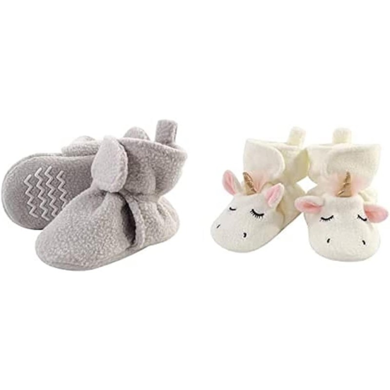 Hudson Baby Girl Cozy Fleece Booties 2-Pack, Light Gray Modern Unicorn, 18-24 Months(Hudson Baby Girl Cozy Fleece Booties 2-Pack, Light Gray Modern Unicorn, 18-24 Months)