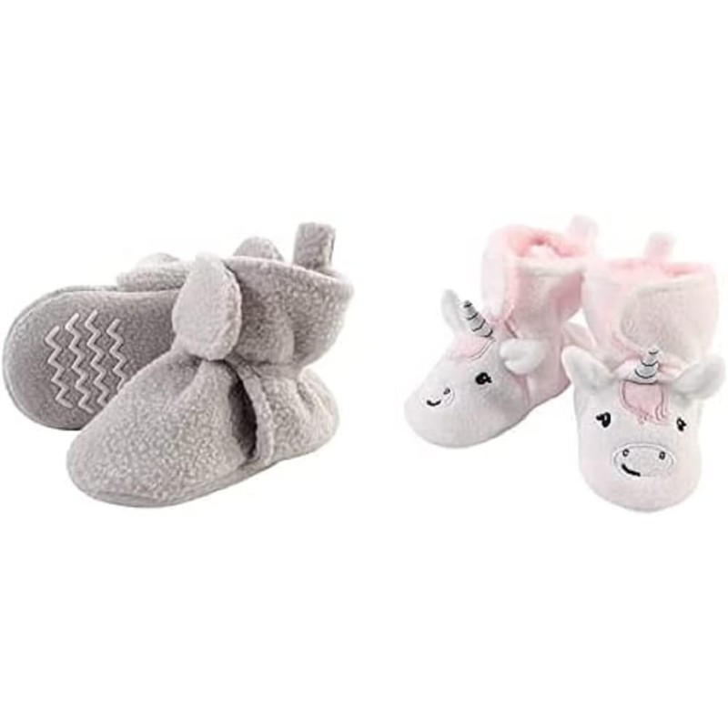 Hudson Baby Girl Cozy Fleece Booties 2-Pack, Light Gray Silver White Unicorn, 18-24 Months(Hudson Baby Girl Cozy Fleece Booties 2-Pack, Light Gray Silver White Unicorn, 18-24 Months)
