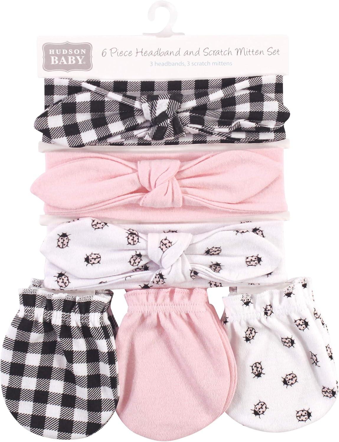 Hudson Baby Girls 12Pc Cotton Headband and Scratch Mitten Set, Lady Bug Xoxo, 0-6 Months(Lady Bug Xoxo)