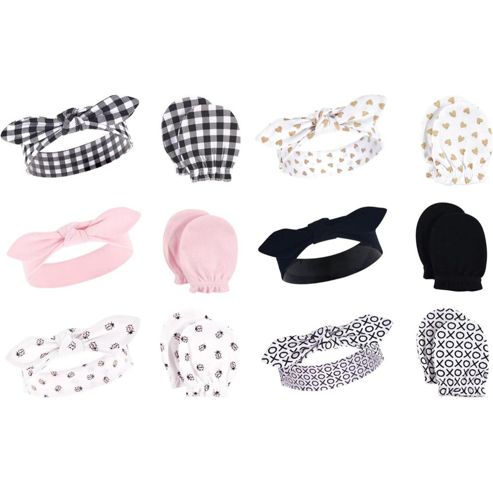 imageHudson Baby Girls 12Pc Cotton Headband and Scratch Mitten Set Lady Bug Xoxo 06 MonthsBows Navy Hearts