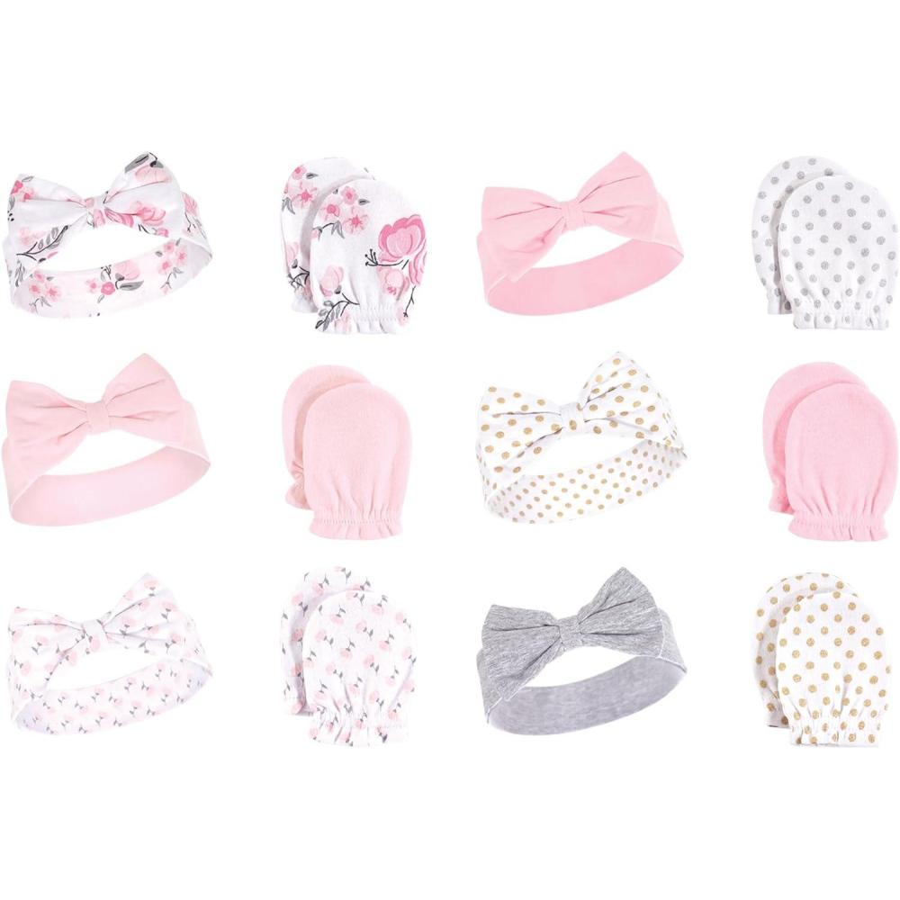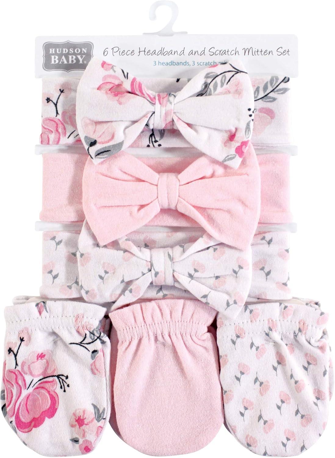 Hudson Baby headband and scratch mitten set is a perfect accessory set for your little girl. Each set comes with coordinating headbands and scratch mittens. Our headbands are a fun headwrap for your baby girl to look stylish with our adorable prints. Our scratch mittens are made with super soft cotton fabric and an elastic band around the wrist so the mittens stay on and protect your little one's face and body from any accidental scratches.