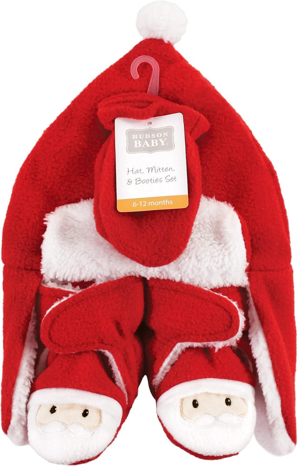 Hudson Baby Girls 12Pc Cotton Headband and Scratch Mitten Set(Santa Red Elf)