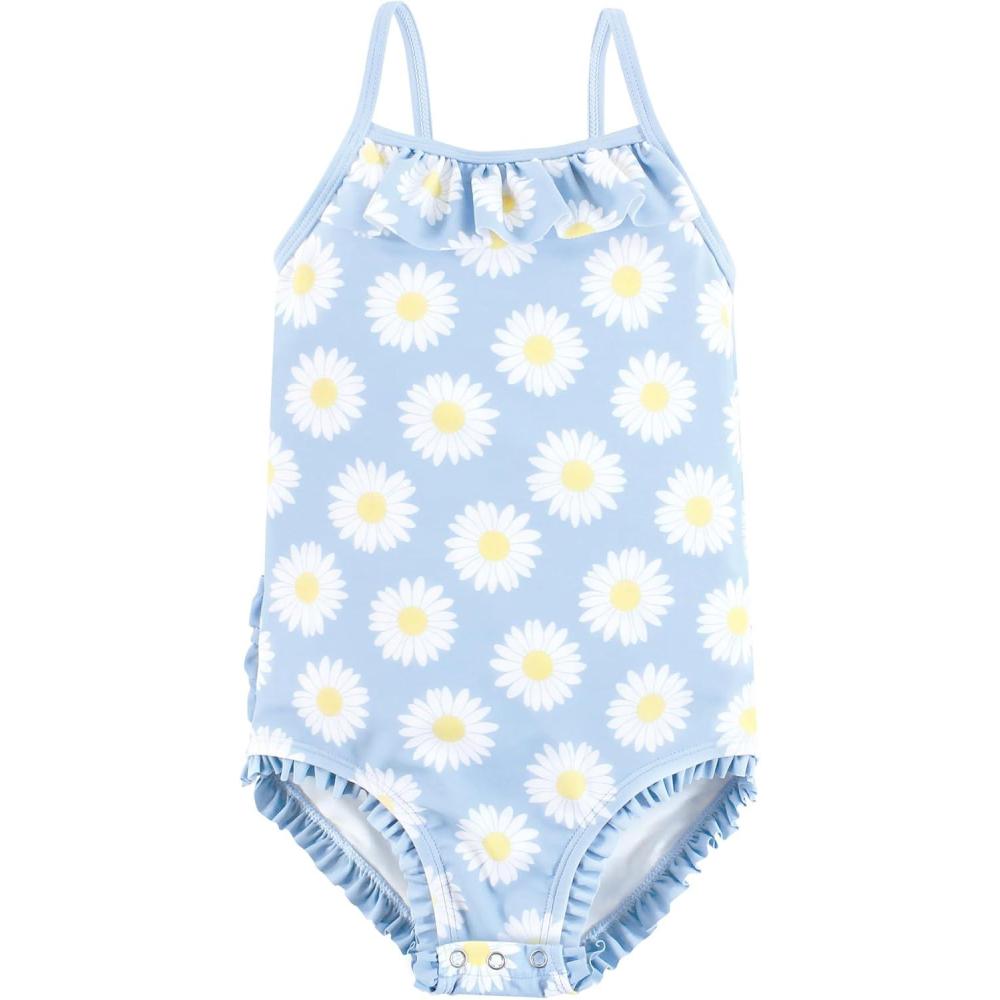 Hudson Baby Girls’ Baby and Toddler Swimsuit(Blue Daisy Baby)