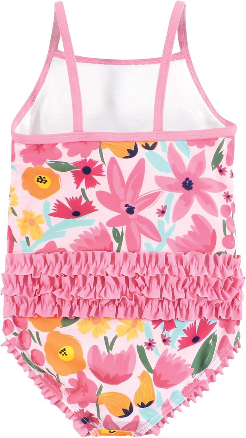 Hudson Baby Girls’ Baby and Toddler Swimsuit(Pink Orange Floral Baby)