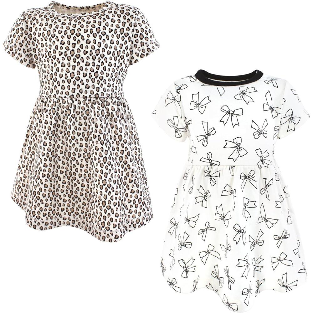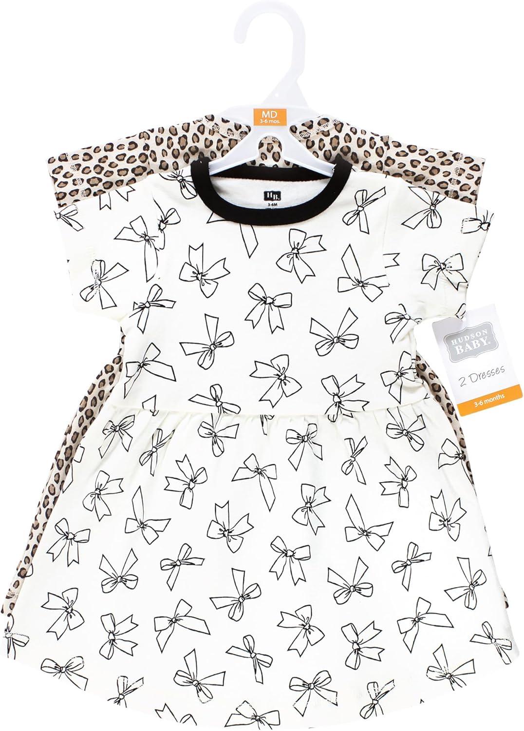 Hudson Baby Girls Cotton Dresses(Bows and Leopard)