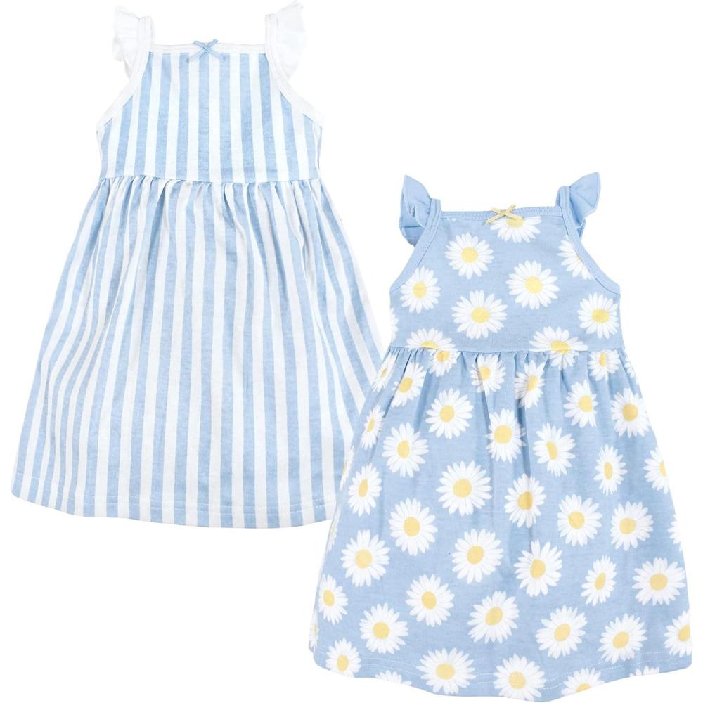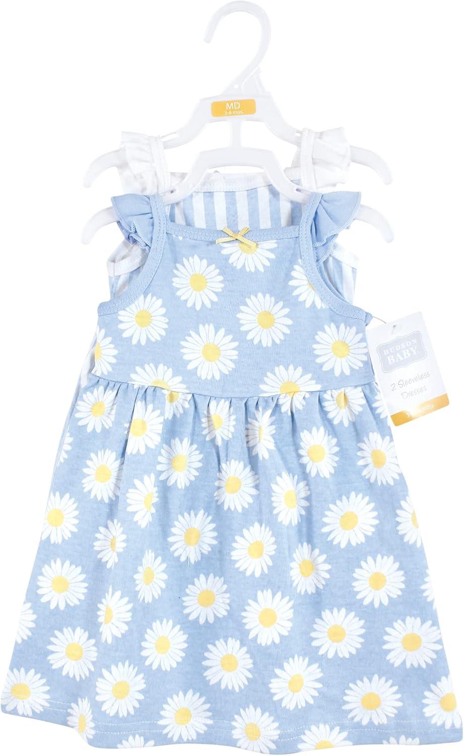 Hudson Baby Girls Cotton DressesCasual Dress(Blue Daisy)