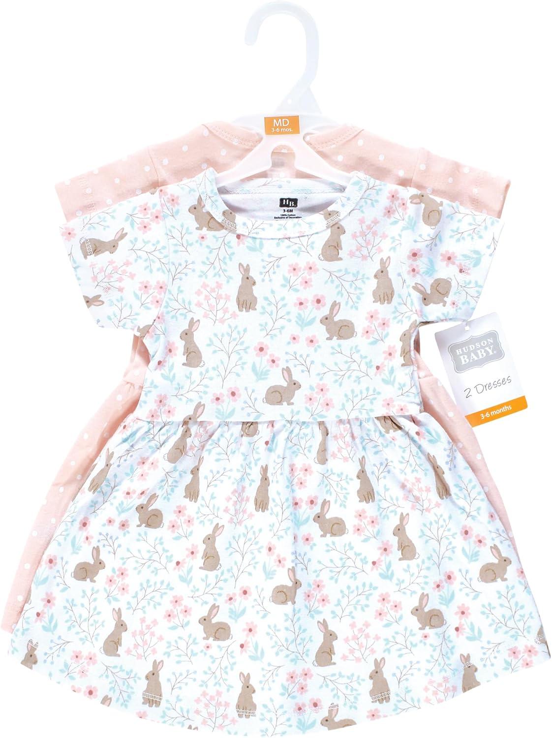 Hudson Baby Girls Cotton Dresses(Floral Bunnies)