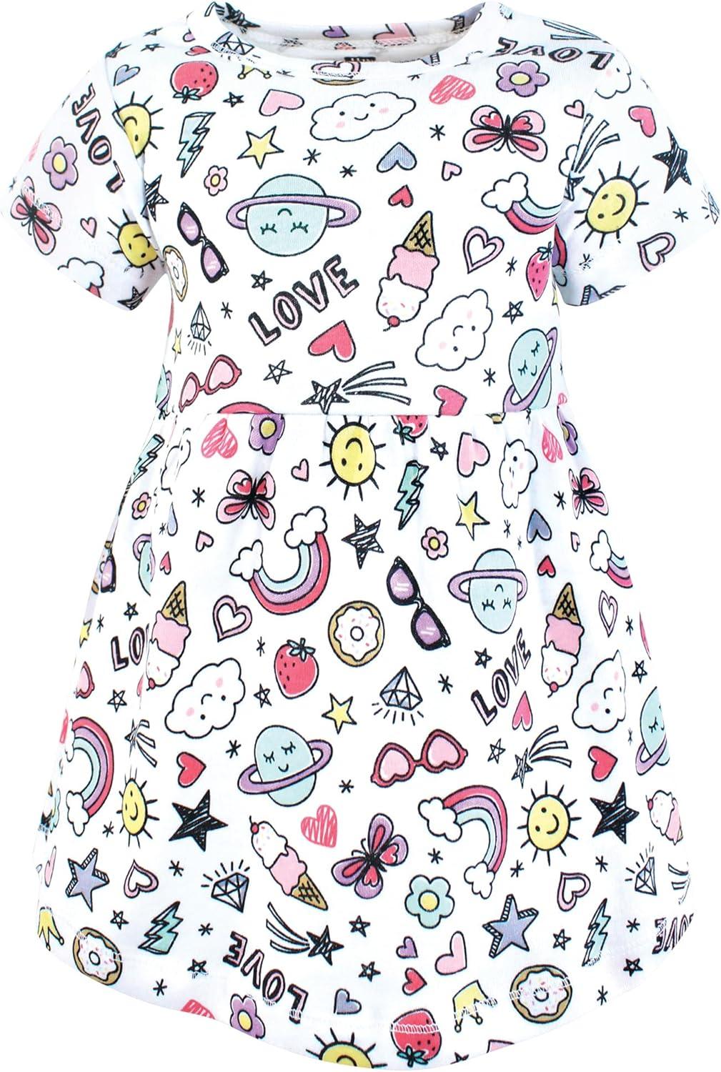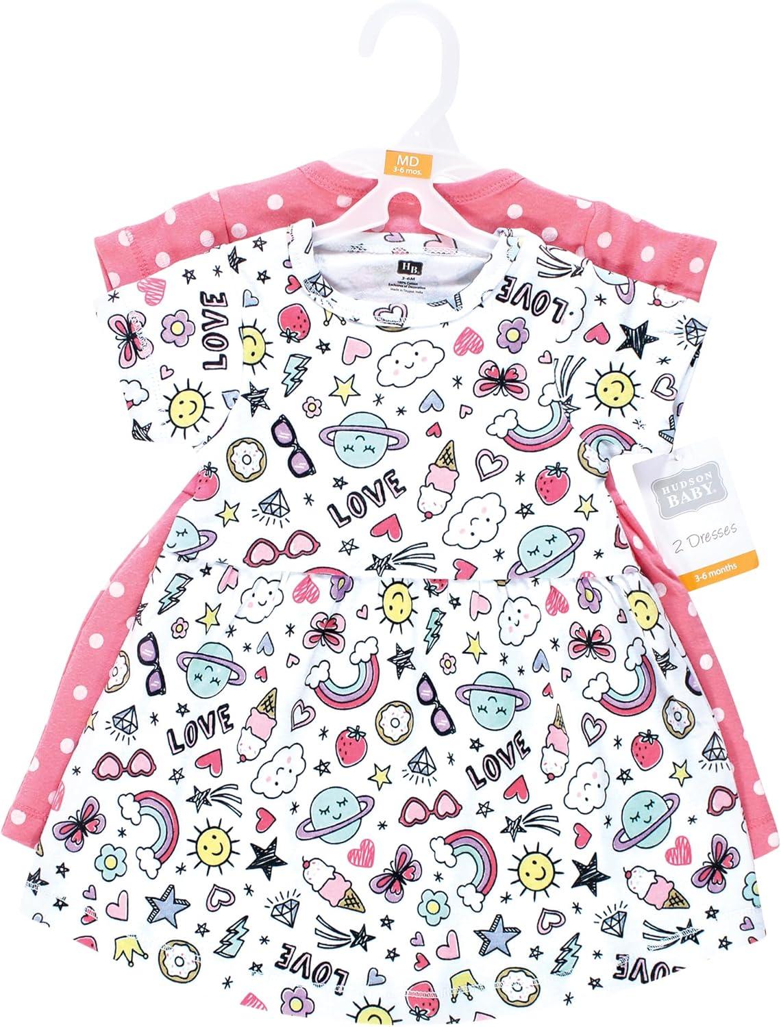 Hudson Baby Girls Cotton Dresses(Pink Doodles)