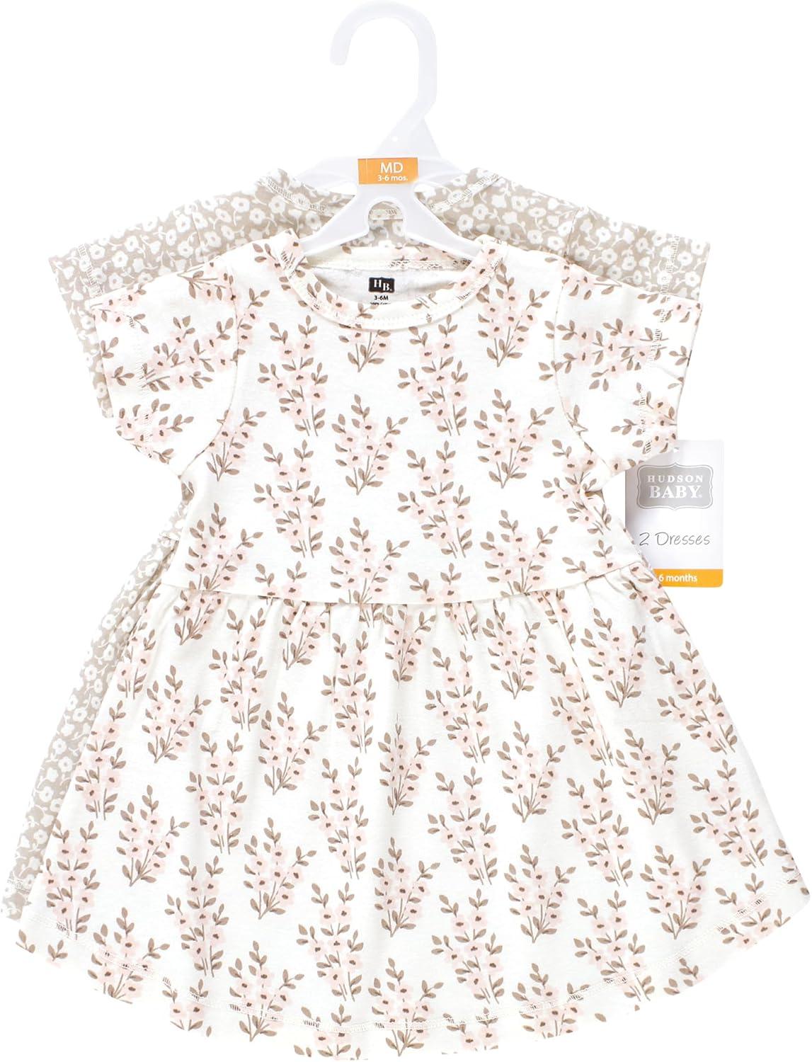 Hudson Baby Girls Cotton Dresses(Pink Taupe Florals)