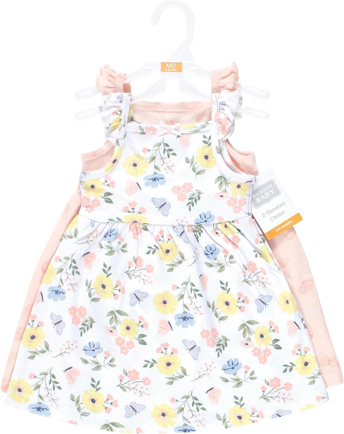 Hudson Baby Girls Cotton Dresses(Soft Butterfly Floral)