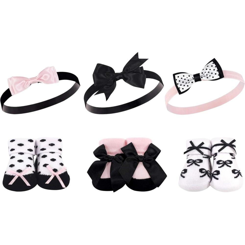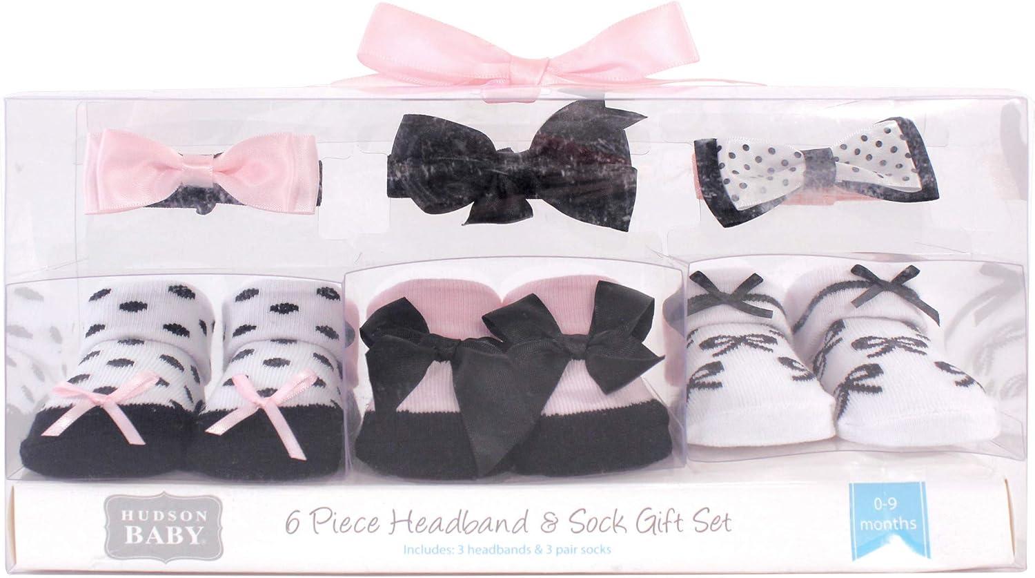Hudson Baby Girl’s Headband and Socks Giftset(Black Pink Bows)