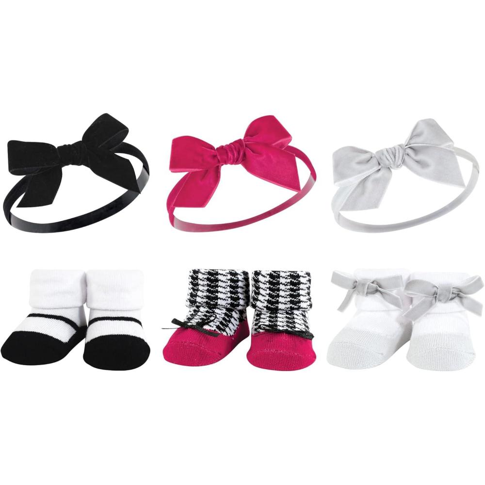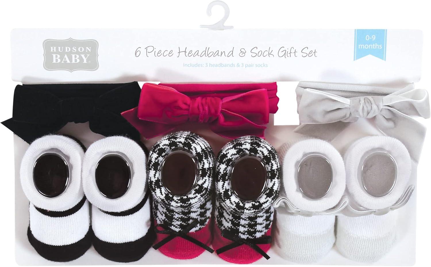 Hudson Baby Girl’s Headband and Socks Giftset(Black Pink)