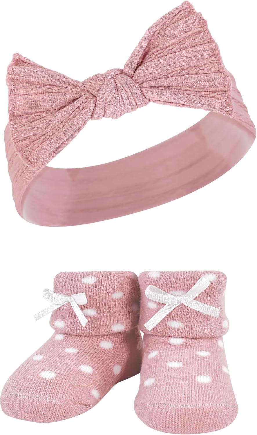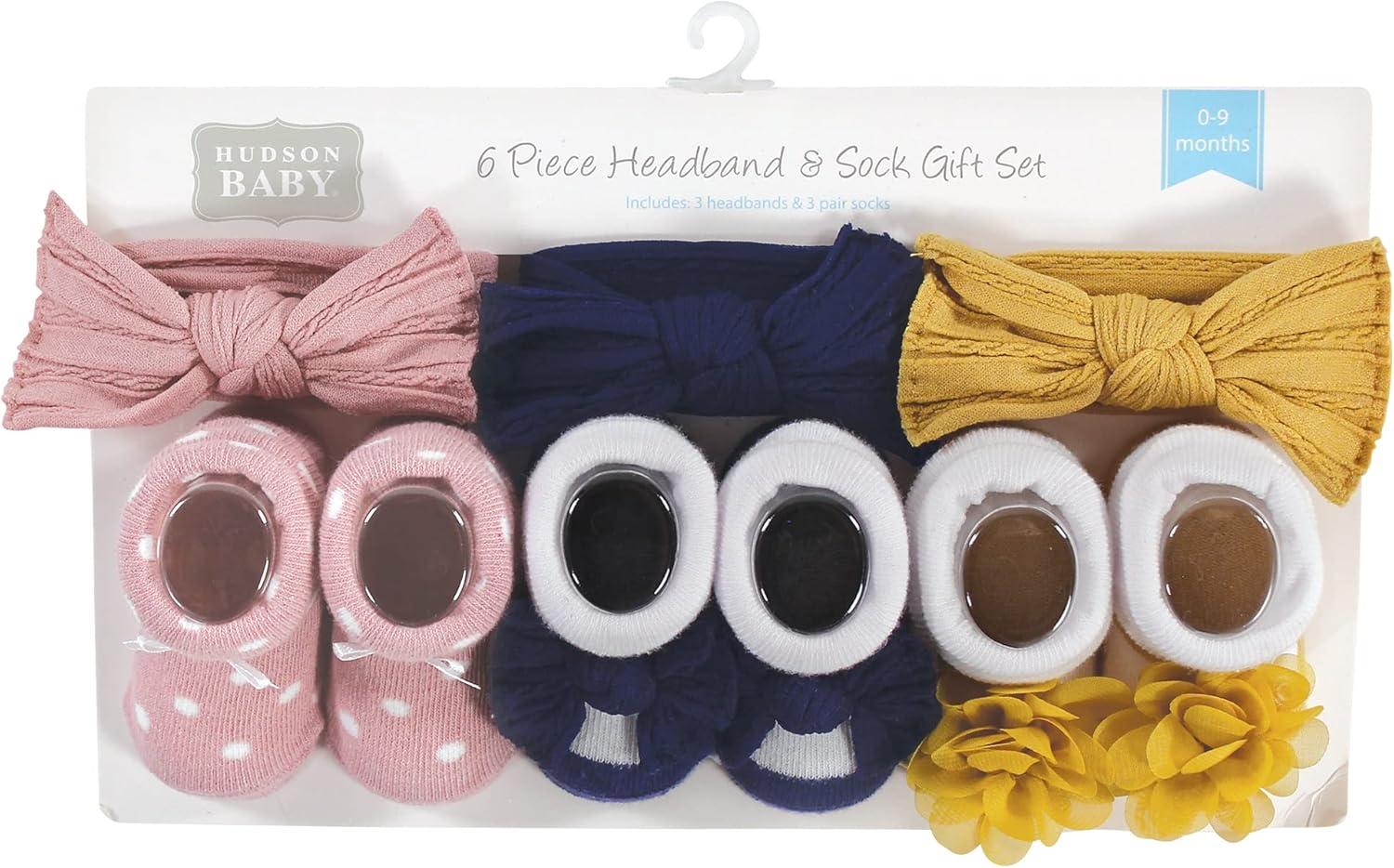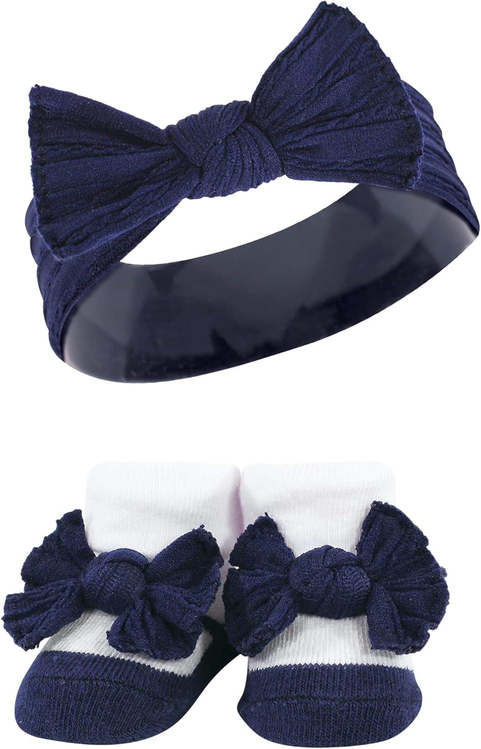 Hudson Baby Girl’s Headband and Socks Giftset(Blush Navy)