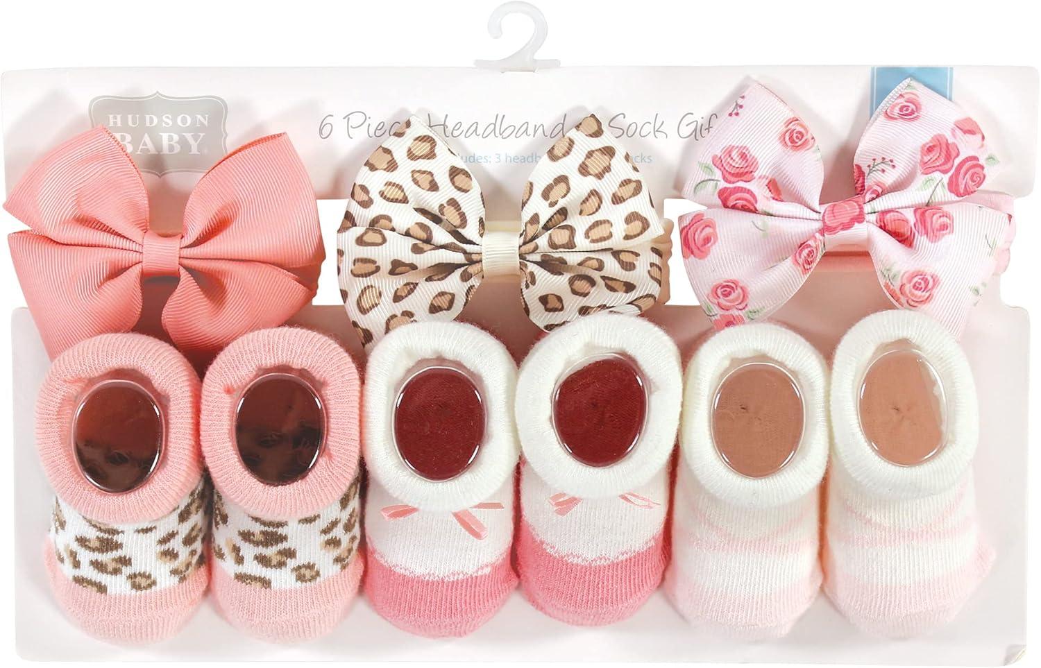 Hudson Baby Girl’s Headband and Socks Giftset(Blush Rose)