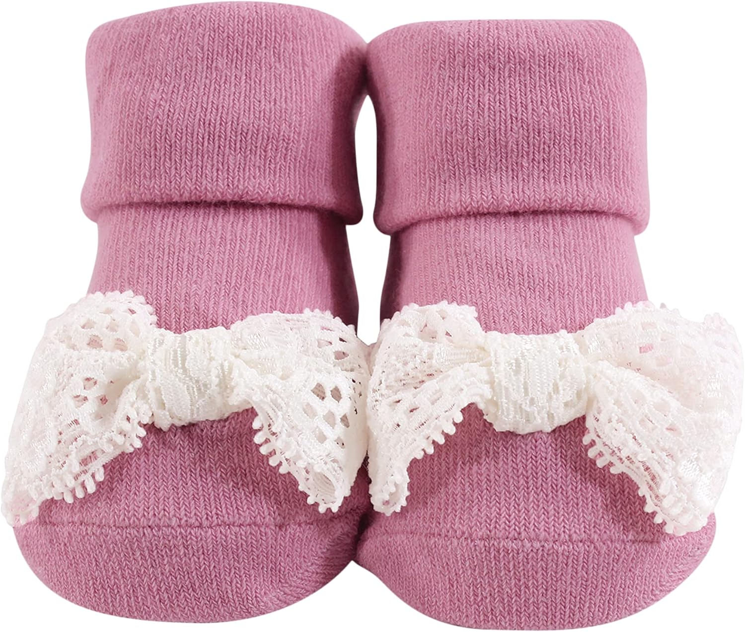 Hudson Baby Girl’s Headband and Socks Giftset(Dark Pink Black 6-pack)