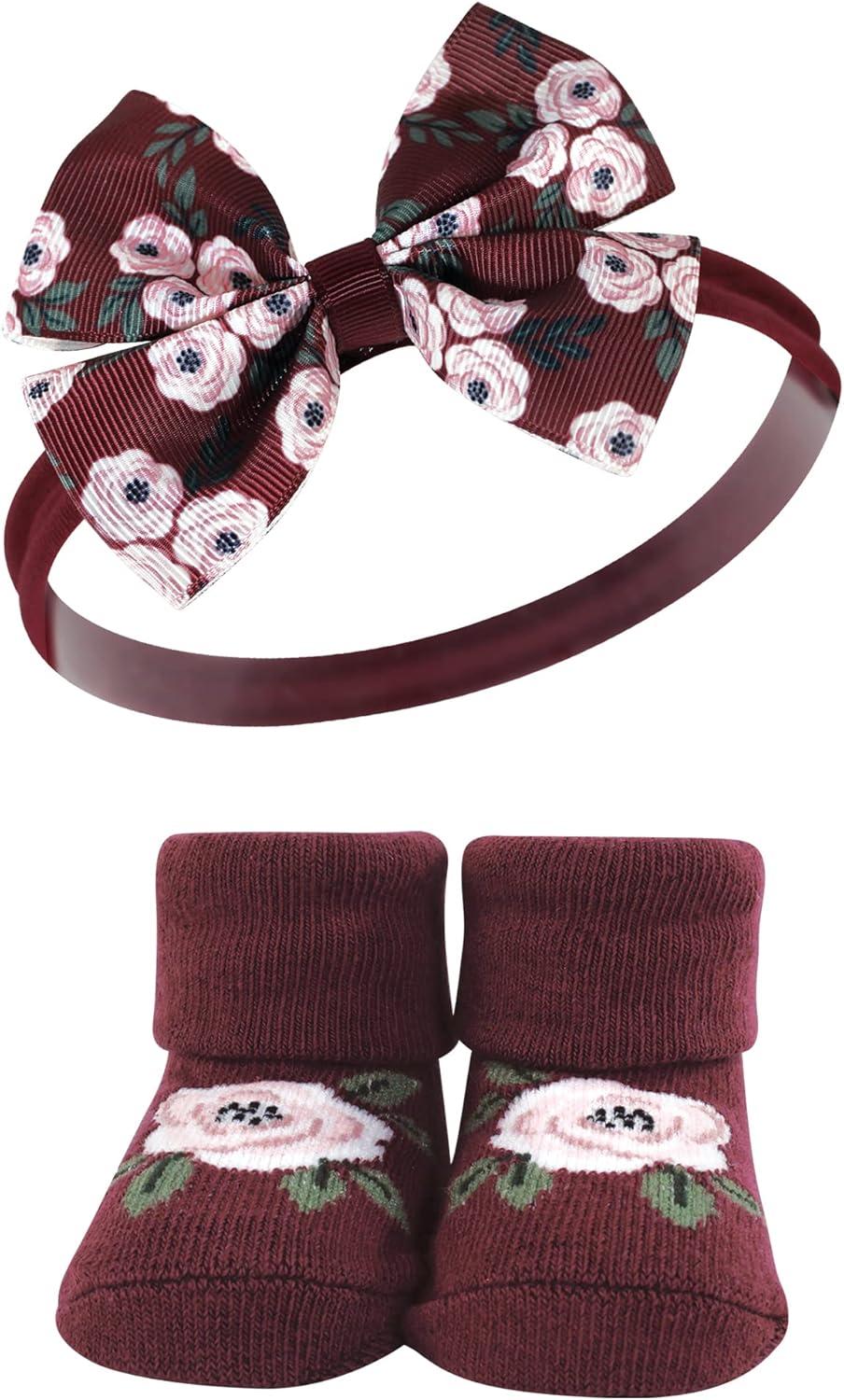 Hudson Baby Girl’s Headband and Socks Giftset(Burgundy Floral 8-piece)