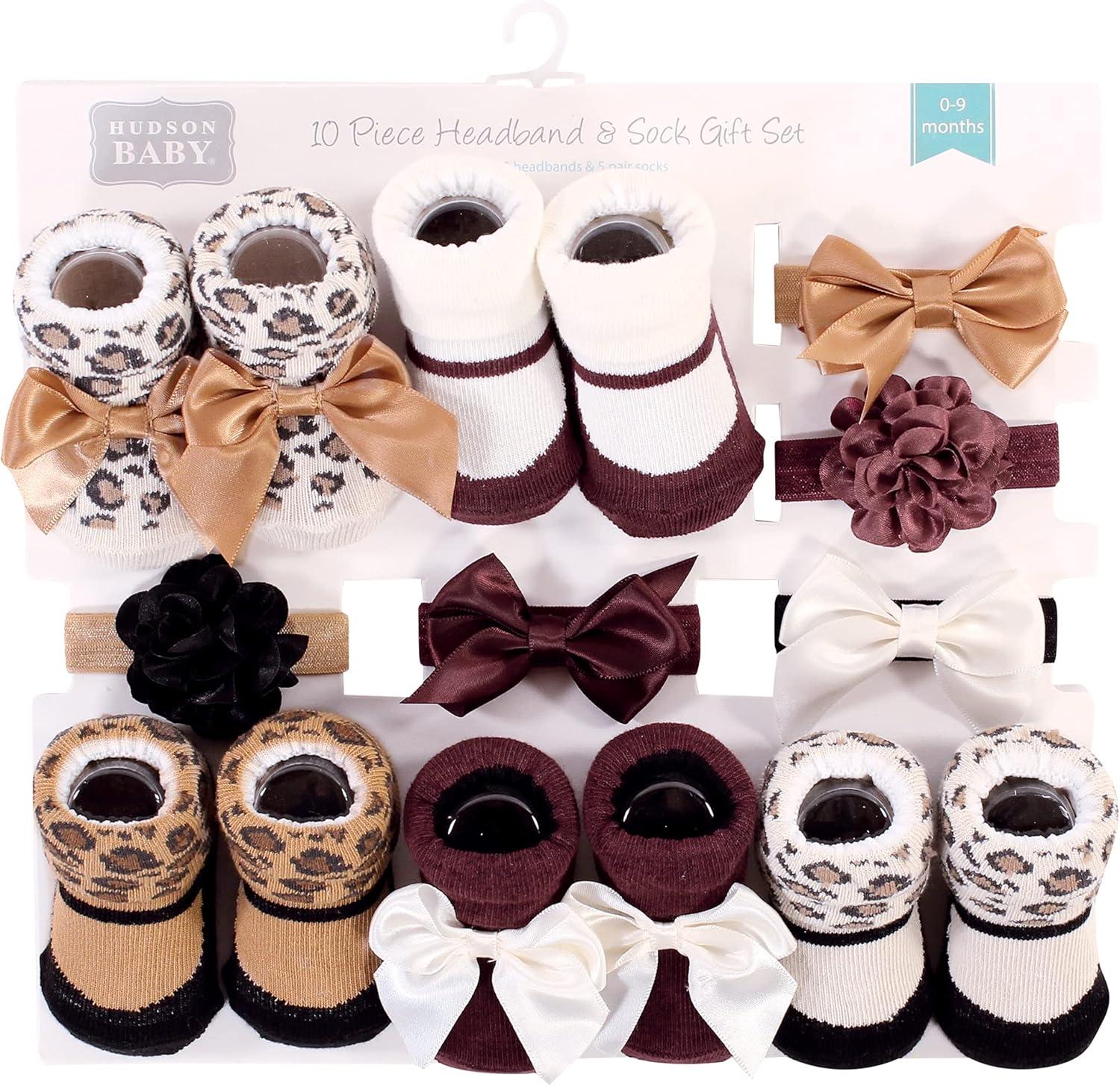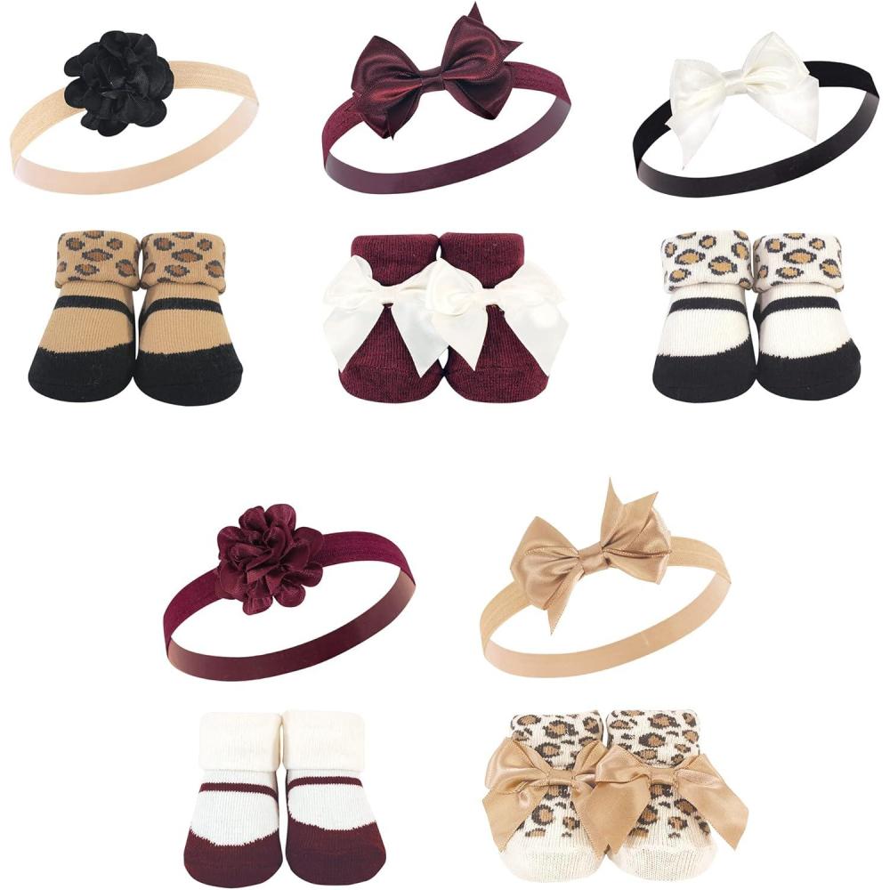 Hudson Baby Girl’s Headband and Socks Giftset(Burgundy Leopard 10-pack)