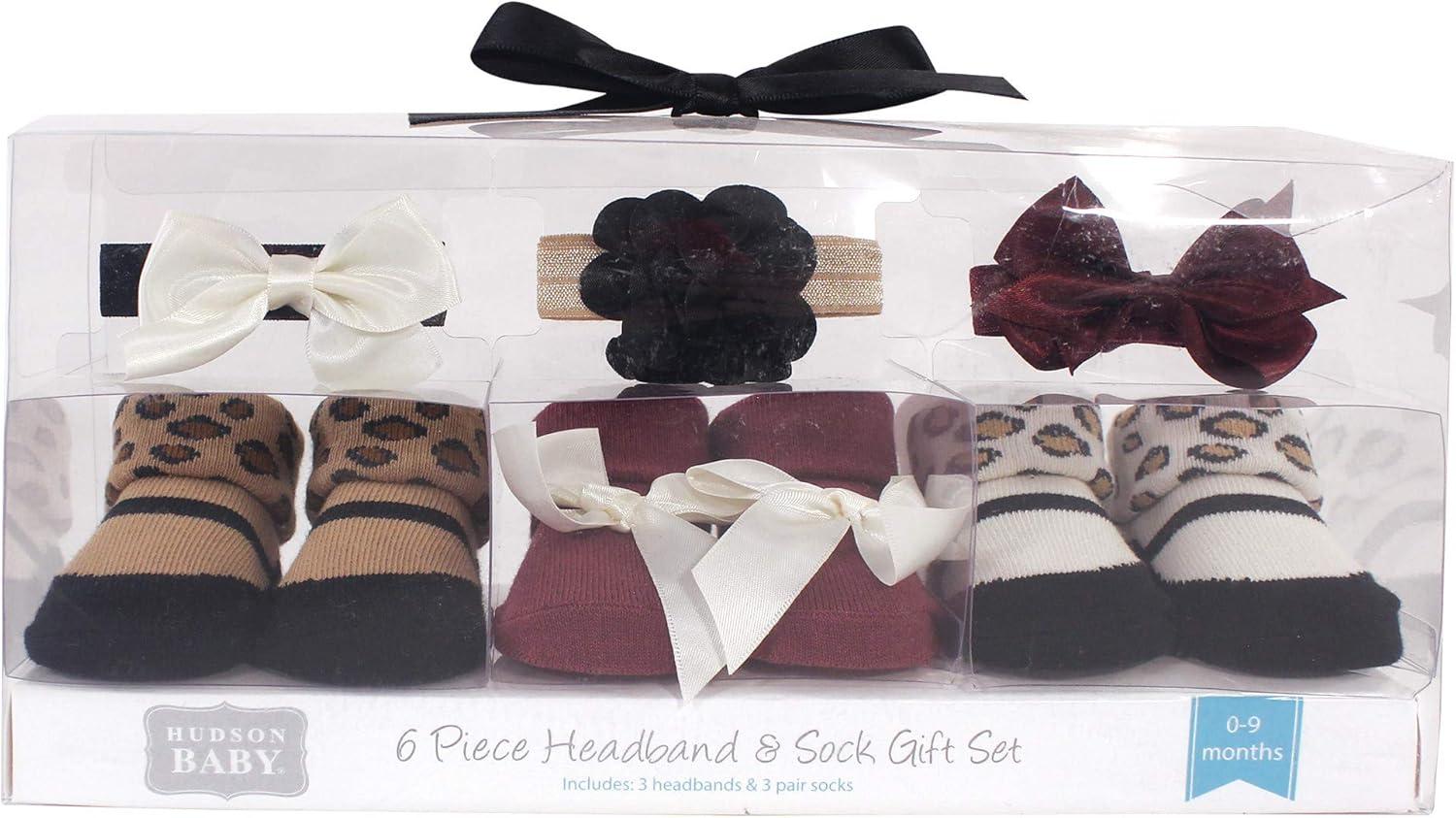 Hudson Baby Girl’s Headband and Socks Giftset(Burgundy Leopard 6-pack)