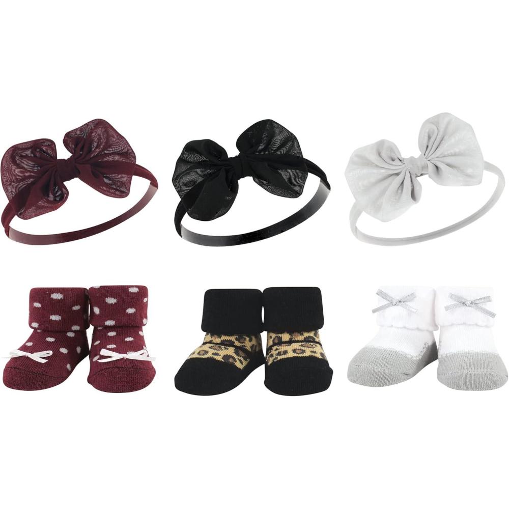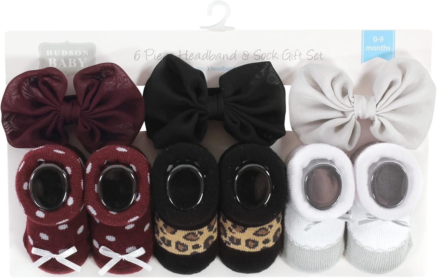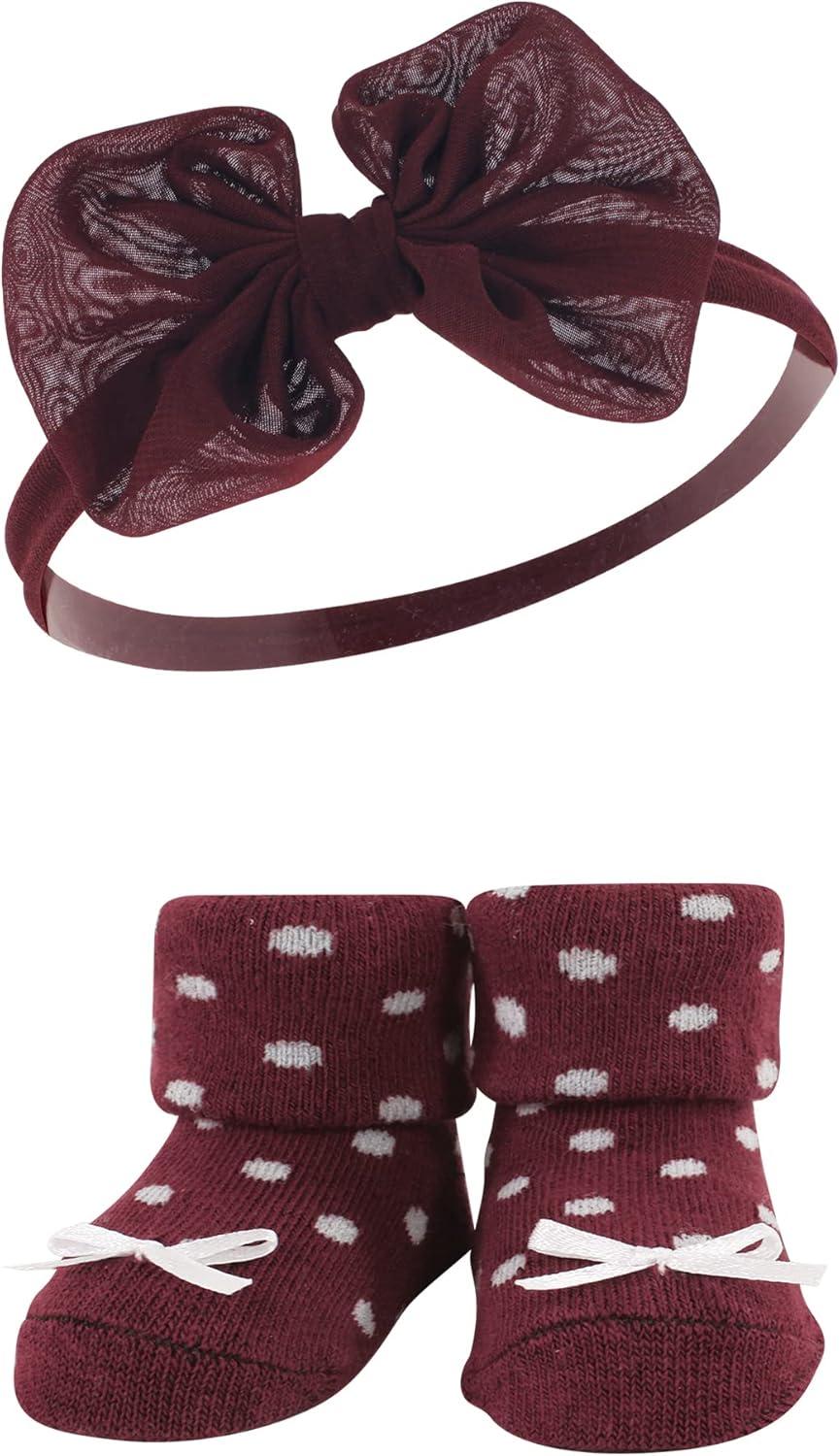 Hudson Baby Girl’s Headband and Socks Giftset(Burgundy Leopard)