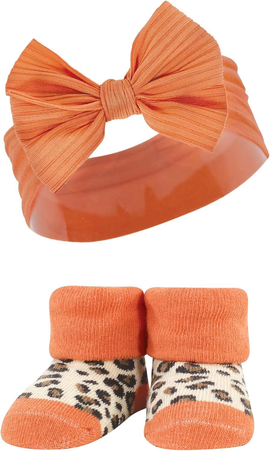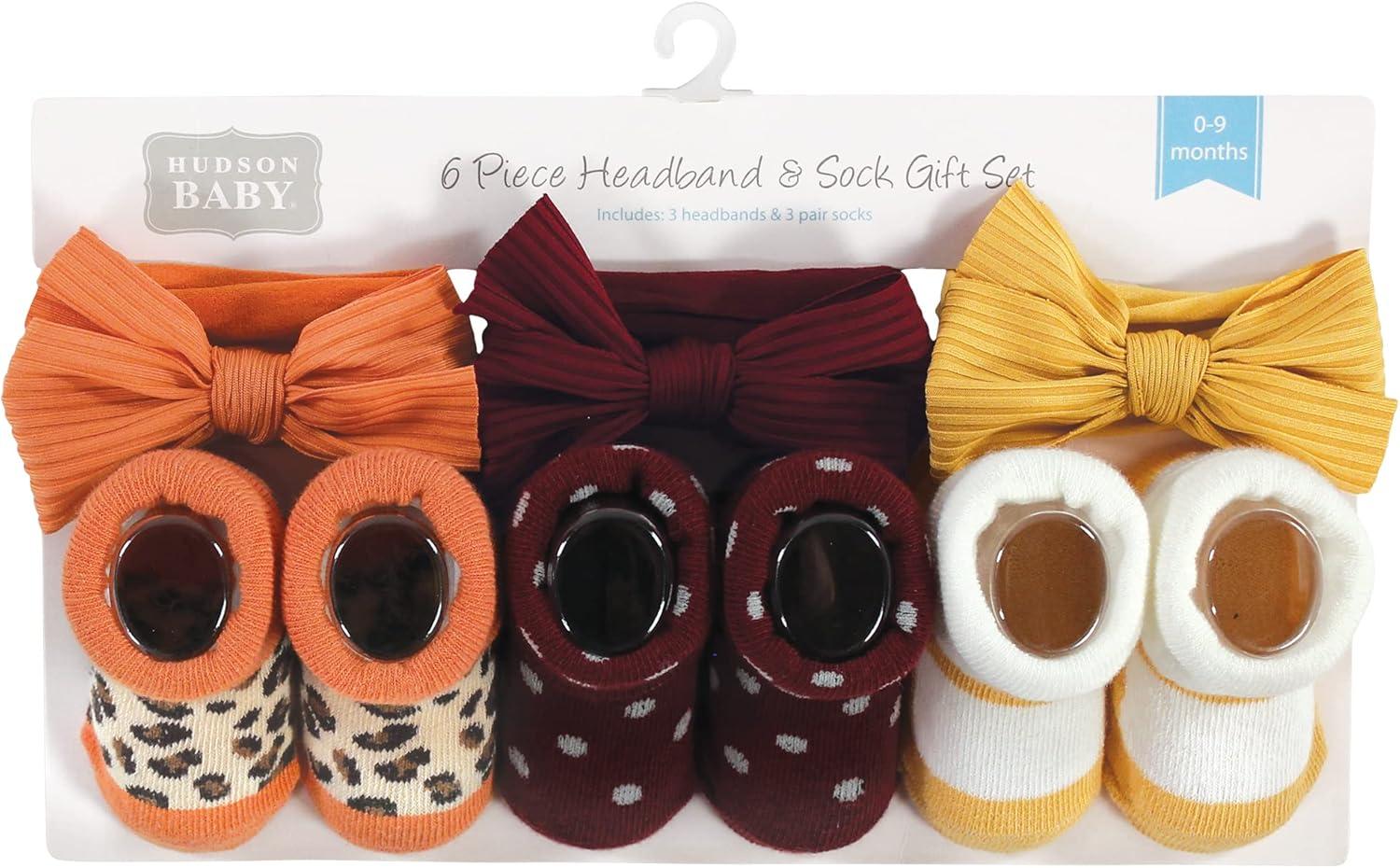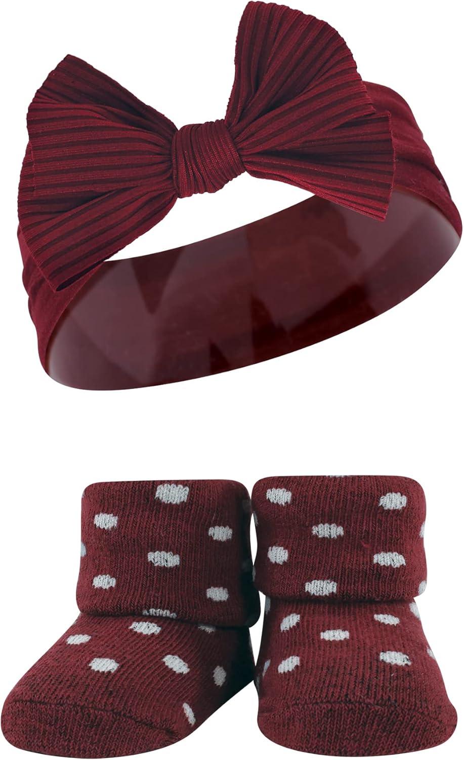 Hudson Baby Girl’s Headband and Socks Giftset(Burgundy Orange)