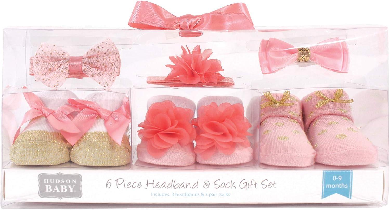 Hudson Baby Girl’s Headband and Socks Giftset(Coral Gold 6-piece)