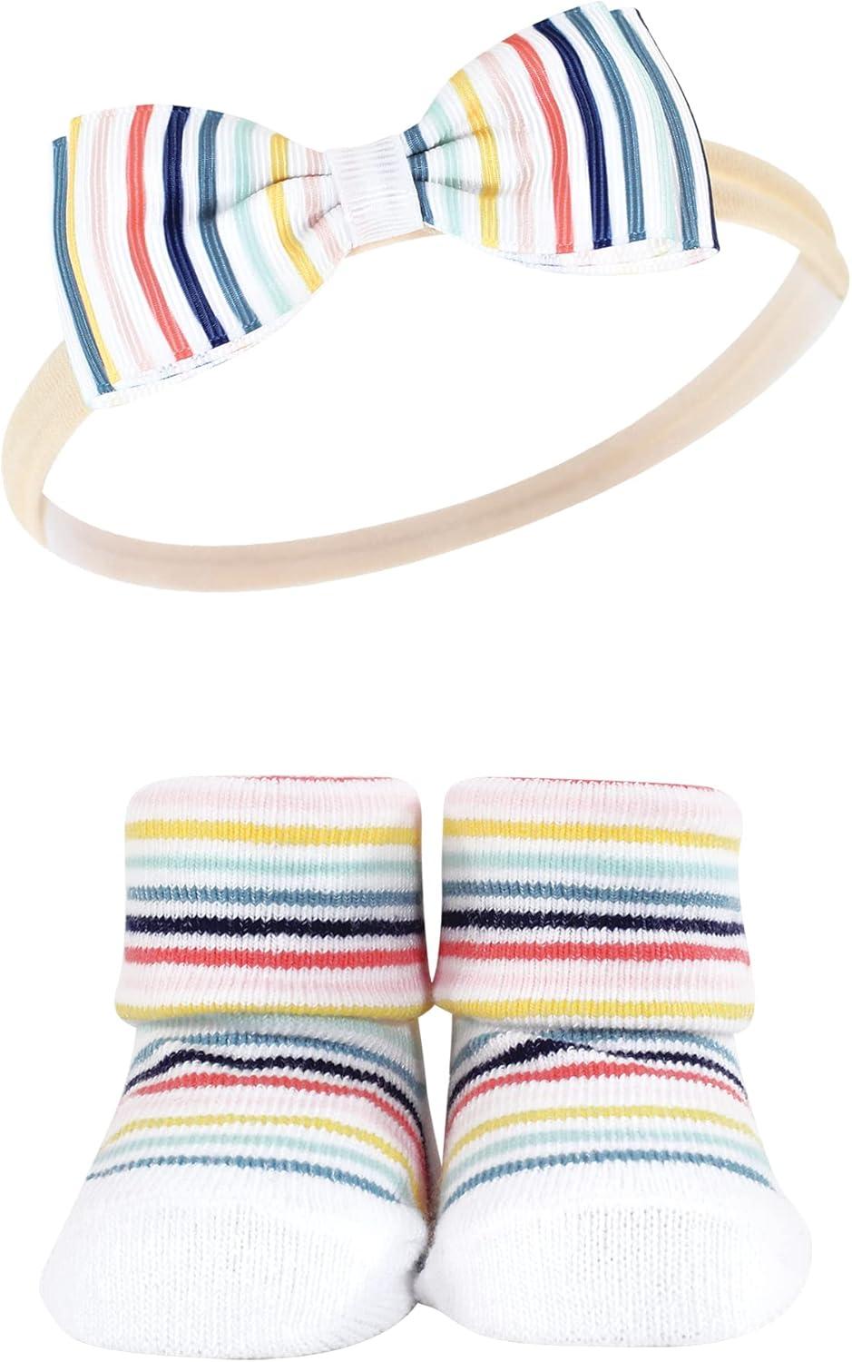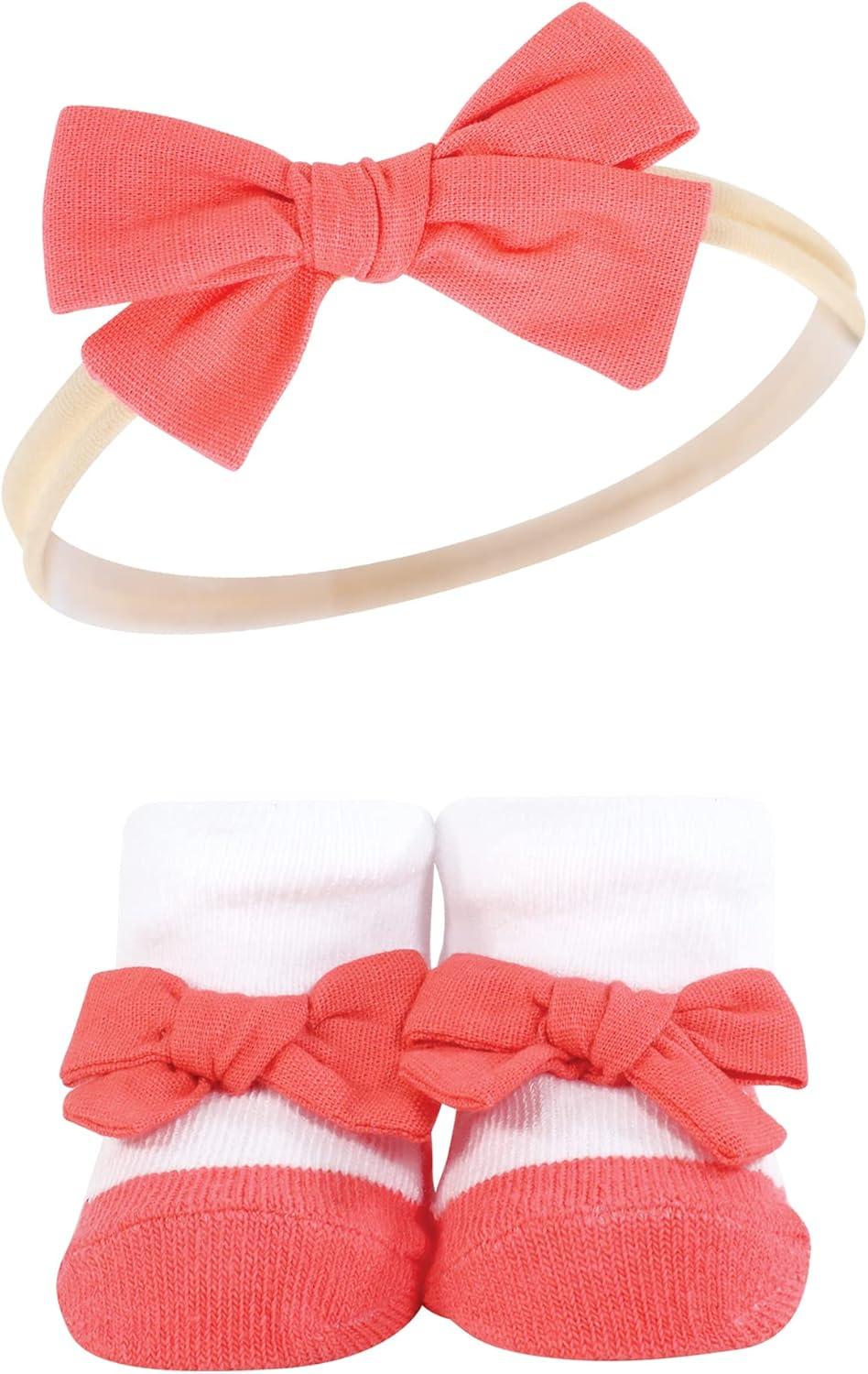 Hudson Baby Girl’s Headband and Socks Giftset(Coral Stripe)