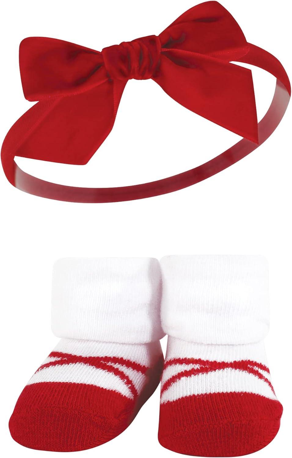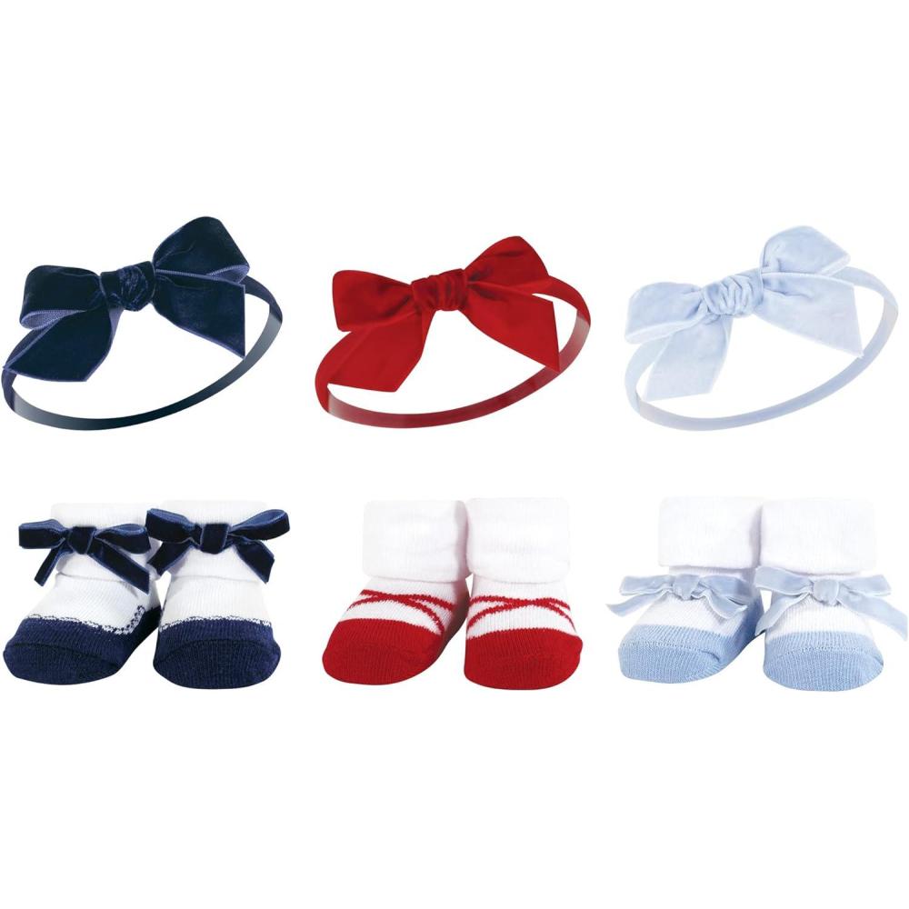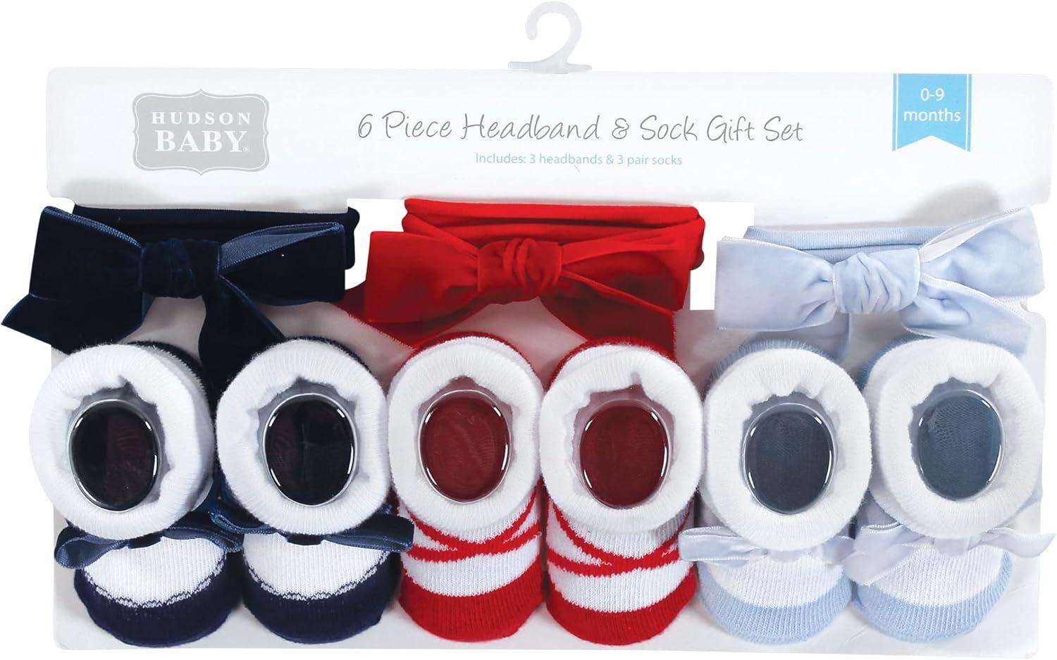 Hudson Baby Girl’s Headband and Socks Giftset(Dark Red Blue)